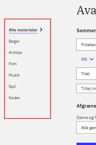 Før søgning kan man bruge de nye specialsøgesider. Under avanceret søgning er der nu en række specialsøgesider med afgrænsningsmuligheder, der er tilpasset den enkelte materialetype.