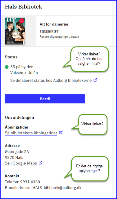 - Virker diverse links til dit biblioteks hjemmeside?