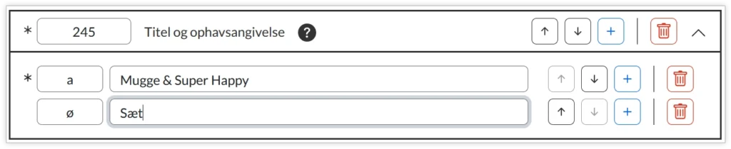 - Tilføj et felt *ø i felt 245 med værdien: Sæt
