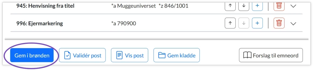 - Herefter sendes posten til databrønden ved at klikke på Gem i brønden.