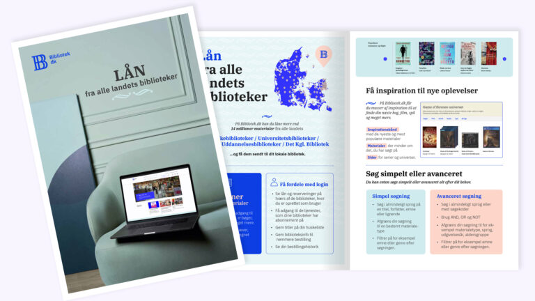 Vi har lavet en informationsfolder, som giver et nemt og hurtigt overblik over Bibliotek.dk og sitets mange inspirerende features.